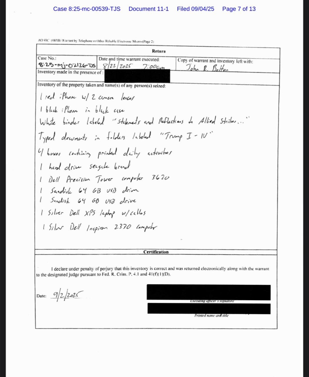 LIST OF STUFF TAKEN FROM JOHN BOLTON'S HOUSE Posted By: jensingr