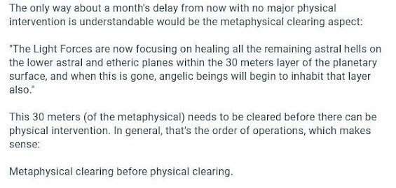 The Light Forces have asked me not to release any dates in the future, as those dates only lead to speculation and possible disappointment. Much of the plan for direct physical intervention must remain classified, and I will only reveal when I can and what I can.