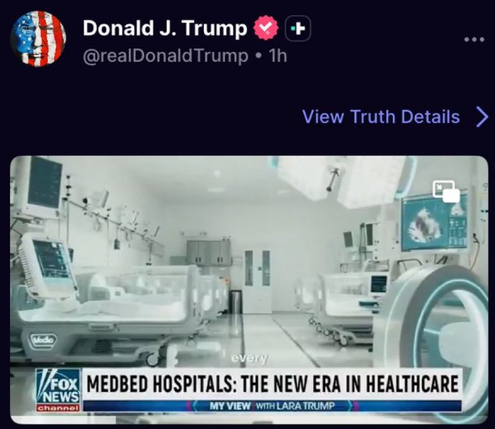 Should America become a great trade partner, this report notes, Russia would be more than interested in what President Trump revealed this week: “Every American will soon receive their own medbed card...With it, you’ll have guaranteed access to our new hospitals led by the top doctors in the nation, equipped with the most advanced technology in the world...These facilities are safe, modern, and designed to restore every citizen to full health and strength..This is the beginning of a new era in American healthcare ”.