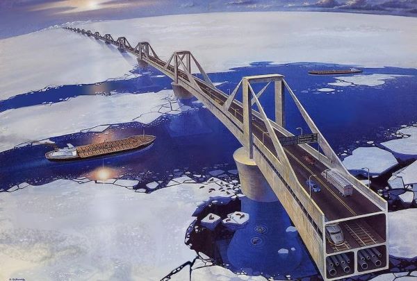 In the 1950s, Soviet scientist Pyotr Borisov developed a utopian project for a dam across the Bering Strait. It was hoped that this would not only connect the countries but also change the climate by redirecting ocean currents to melt the Arctic Ocean.
