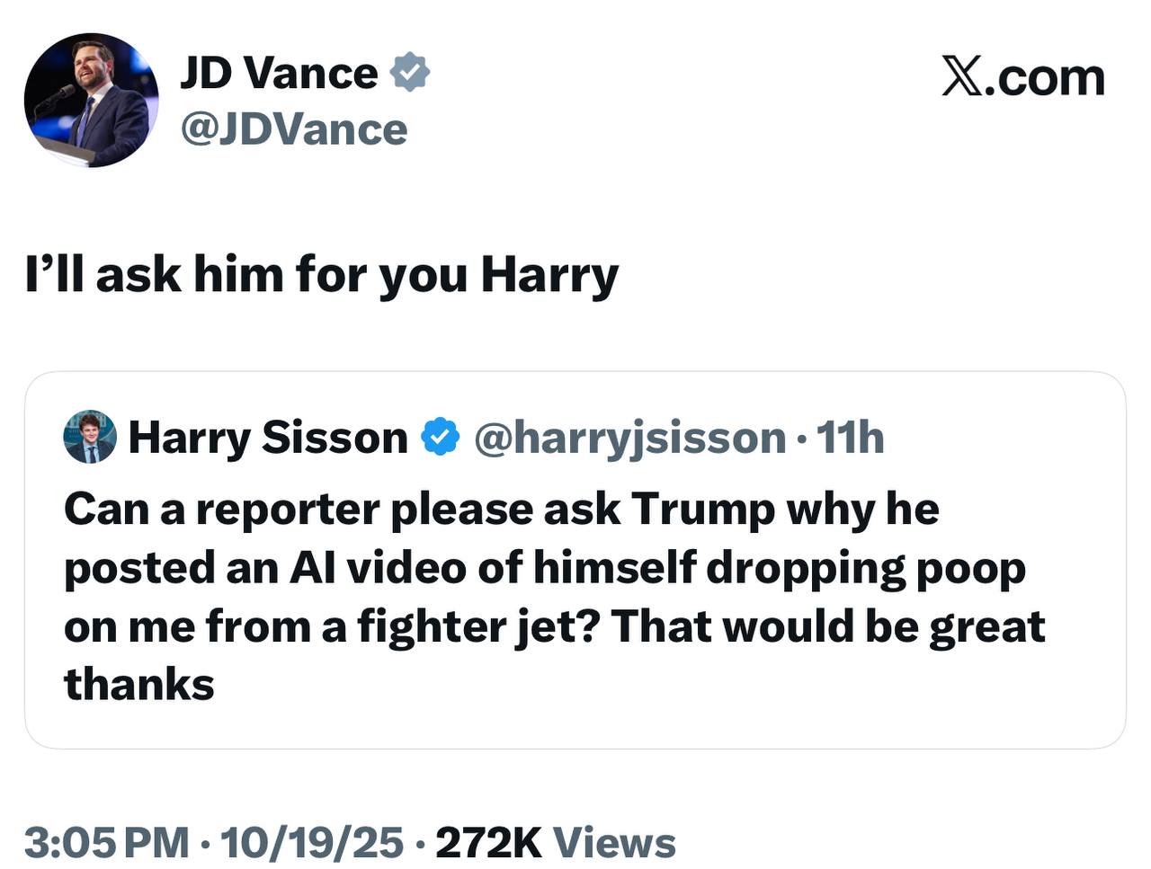 JD VANCE responds to TRUMP hater - why he dropped POOP on me ? 😂 from MEME that BROKE the INTERNET! Posted By: jensingr
