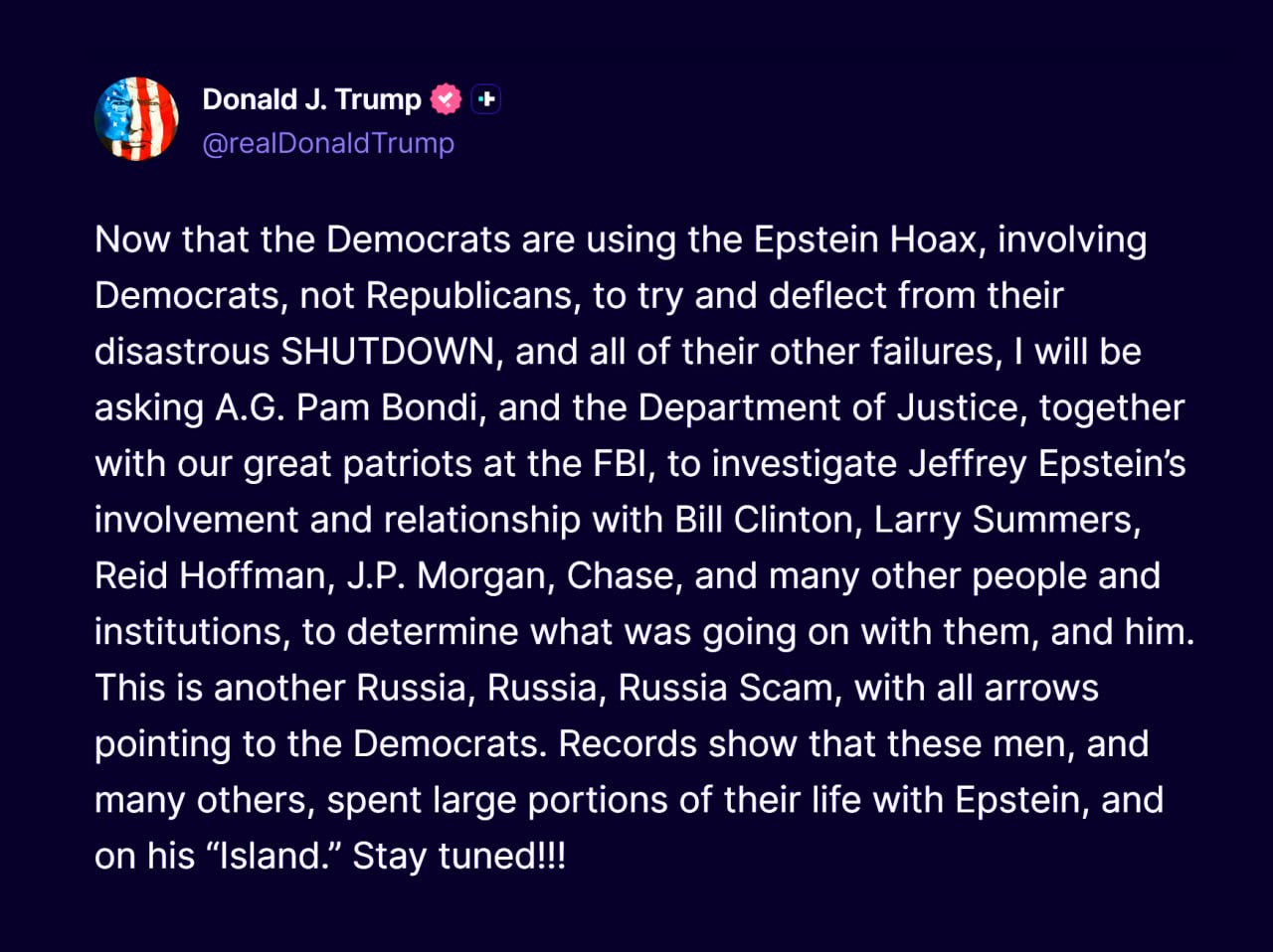 TRUMP names NAMES in EPSTEIN File MESSAGE...STAY TUNED!!! Posted By: jensingr