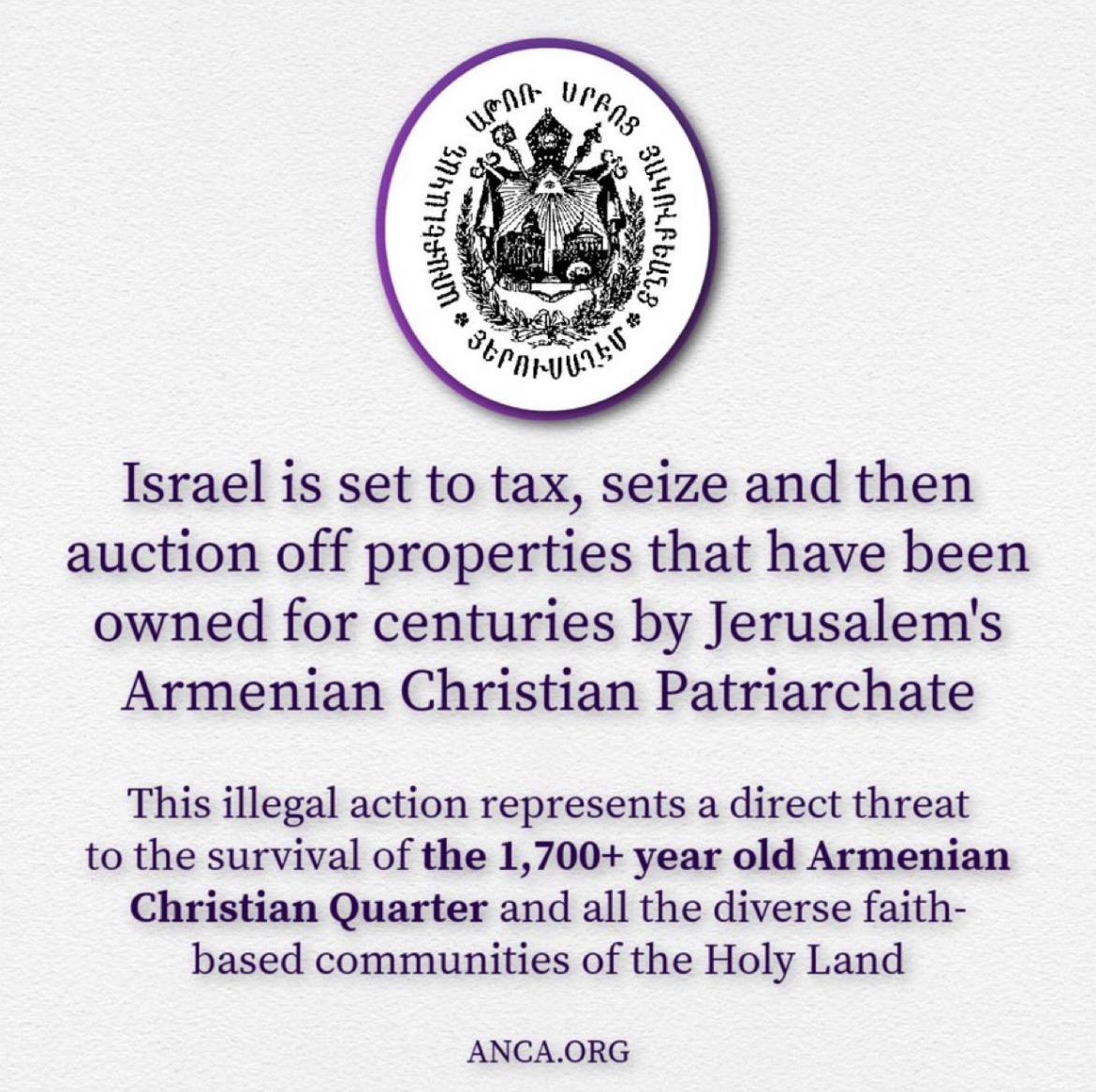 Also, the Israeli government has initiated steps to impose taxes, seize, and auction off historic properties belonging to the Armenian Christian Patriarchate in Jerusalem. These properties, held for centuries, form the foundation of the ancient Armenian Quarter. This action is widely condemned as illegal under international law, including protections for religious and cultural sites. The move threatens to dismantle one of the oldest Christian communities in the Holy Land.