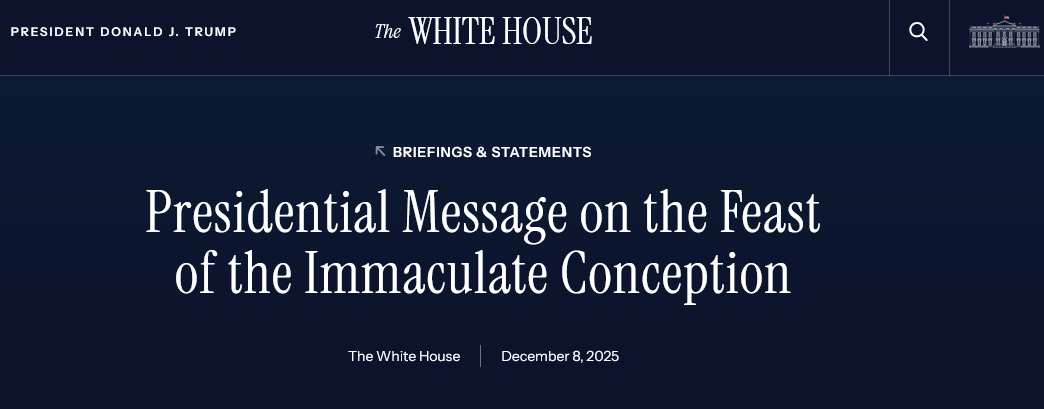 https://www.whitehouse.gov/briefings-statements/2025/12/presidential-message-on-the-feast-of-the-immaculate-conception/