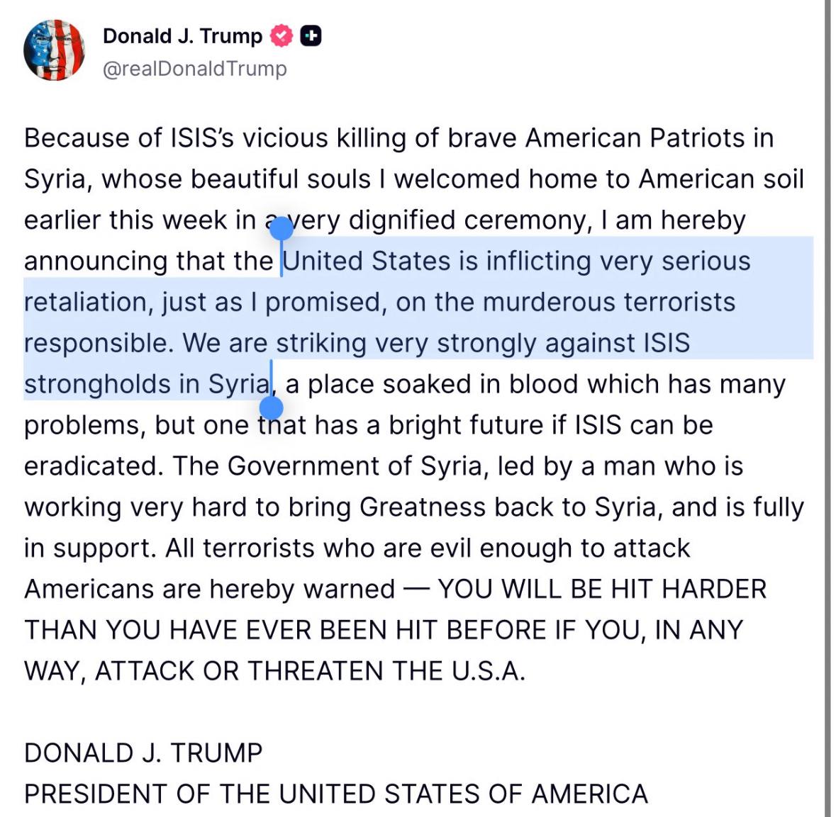 BREAKING!! TRUMP went SCORCHED EARTH!!! US CENTCOM: TONIGHT U.S. FORCES struck 70+ ISIS targets in Syria with 100+ PRECISION MUNITIONS !! Posted By: jensingr