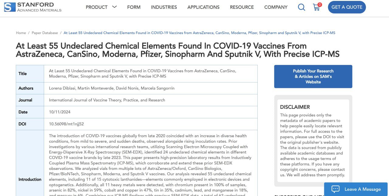 In the latest on that front, “At Least 55 Undeclared Chemical Elements Found in COVID-19 Vaccines from AstraZeneca, CanSino, Moderna, Pfizer, Sinopharm and Sputnik V, with Precise ICP-MS.”