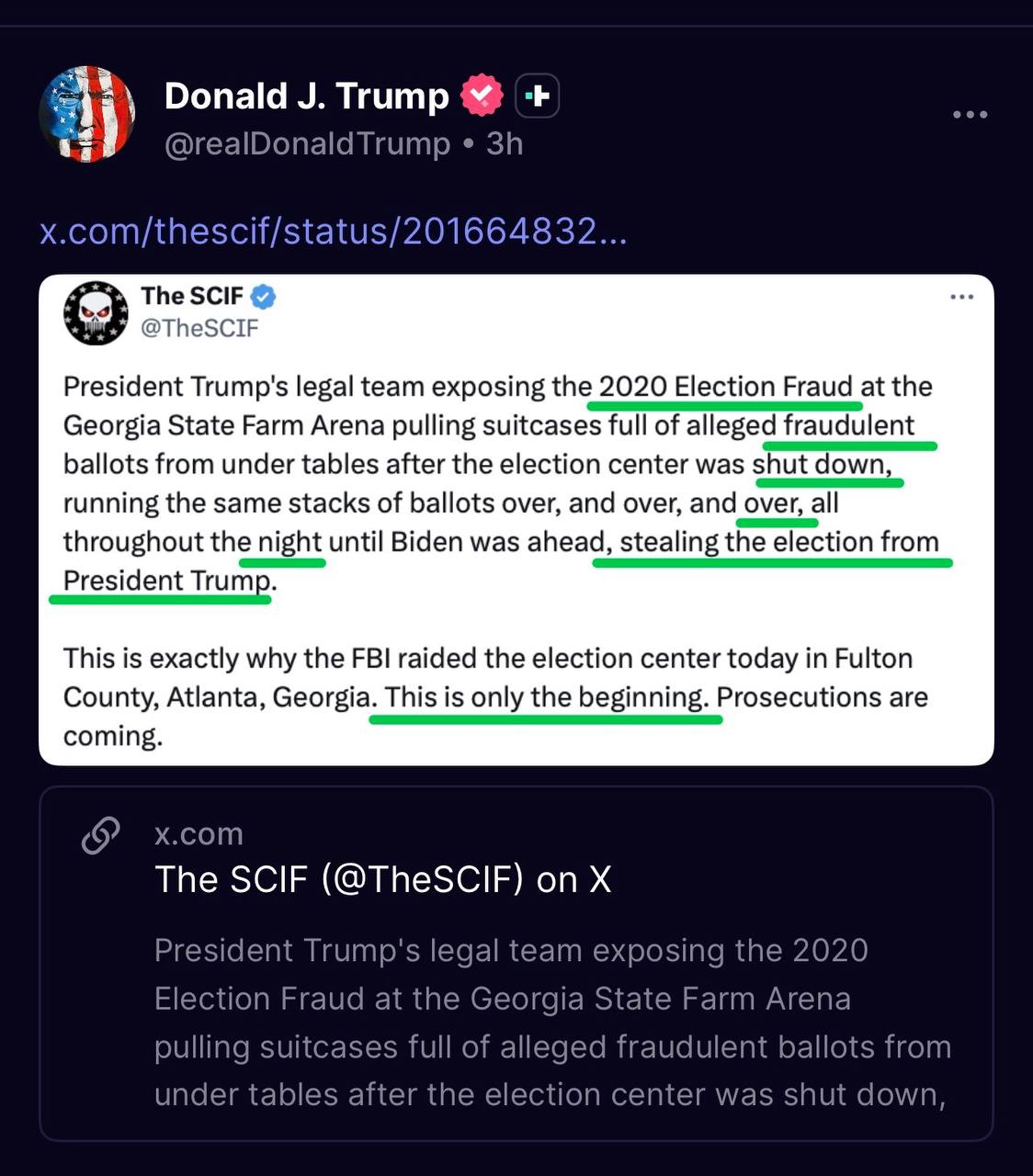 🚨⚡TRUMP goes SCORCHED EARTH>>STOLEN ELECTION>> HUSSEIN COUP & OVERTHROWN GOVT!!🚨⚡ Posted By: jensingr