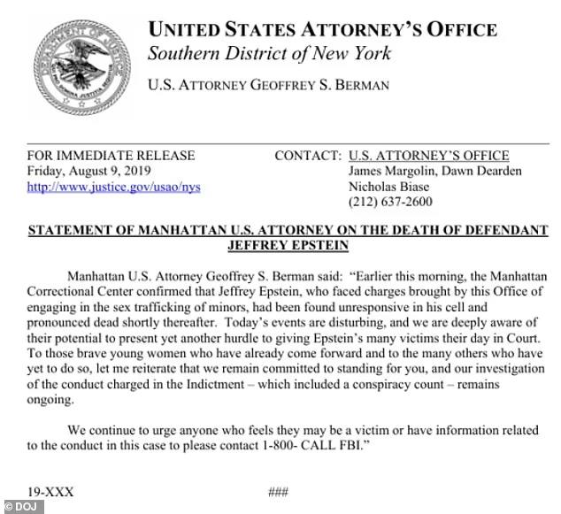 Federal statement in Epstein files says Epstein was already pronounced dead on August 9, contradicting the official timeline that marks his death on August 10