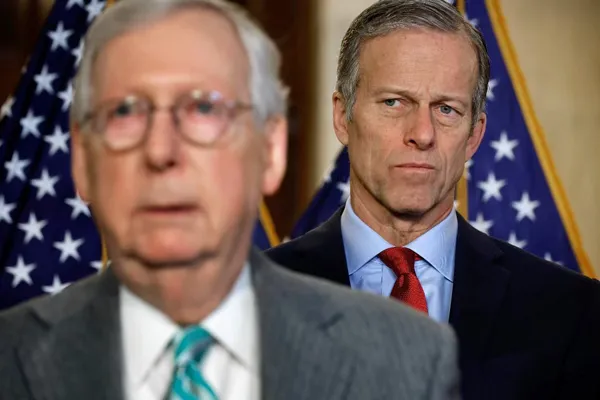 Mitch McConnell shadows Majority Leader John Thune (the look on Thune's face is priceless)