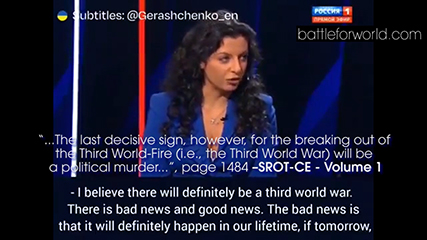 Margarita Simonyan being interviewed on Russian television where she predicts war erupting in the Middle East. – View video at BitChute | Rumble | YouTube