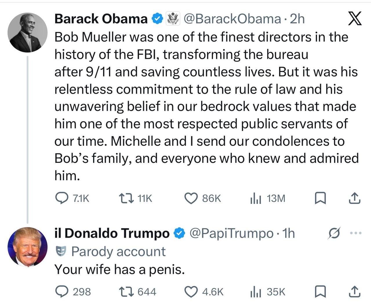 Obama post on Robert Muelller... Posted By: jensingr