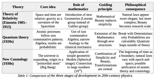 I have outlined the stages of the Mathematization of 20th-Century Physics in Table 1. After the 1930s, Physics shifted from fundamental “revolutions” (Relativity, Quantum Mechanics, Big Bang Cosmology) to an integration and refinement of these core ideas, and this trend continues to this day.