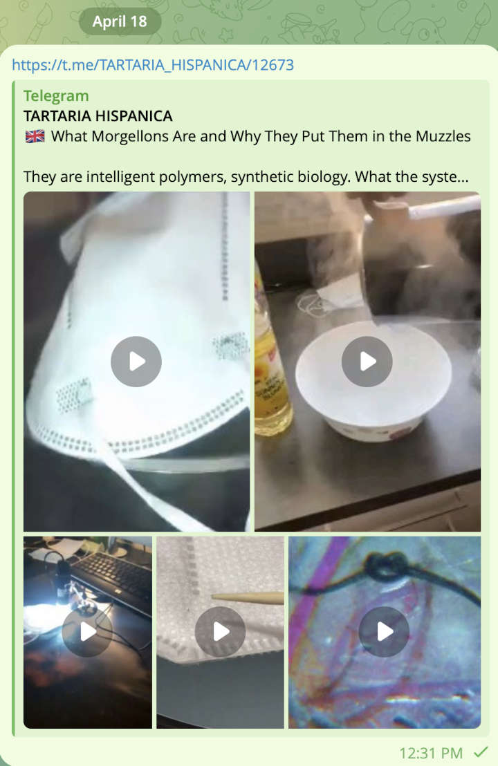 Telegram took down the Tartaria Hispanica channel after the account holder posted this report entitled, "What Morgellons Are and Why They Put Them in the Muzzles" [SCREENSHOT] Posted By: NaturalWisdom
