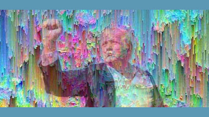 In the very center of this graphic composition, one can discern an imprint that almost perfectly mimics the outline of Trump's body at the moment he was shot at in Butler, Pennsylvania, in 2024. Back then, with blood on his face, he raised his fist in the air, shouting, "Fight! Fight! Fight!" The photograph flew around the world. And it was the imprint of that very image that became part of the page design on Henry Martinez's Twitter... half a year before the assassination attempt itself. (Battleforworld.com: ‘Pareidolia’ is the psychological phenomenon where the mind perceives a meaningful image or pattern from a random or ambiguous stimulus.)